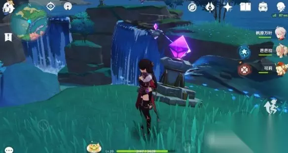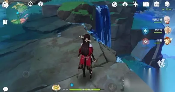然后用例如北斗之类的可以导电的站在如图位置(靠近有两个的电石的瀑布上)。