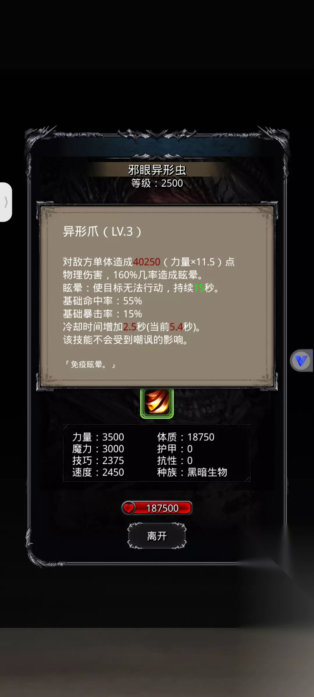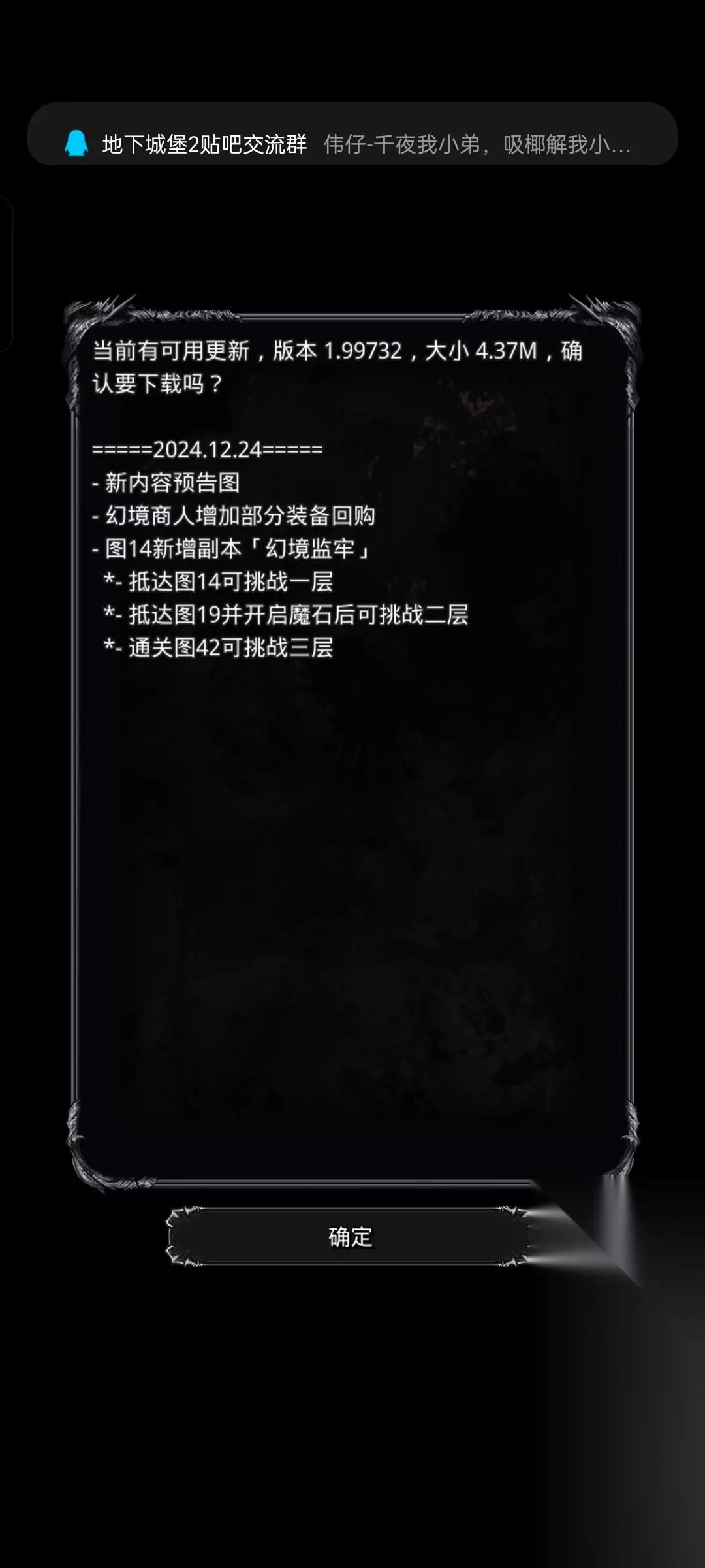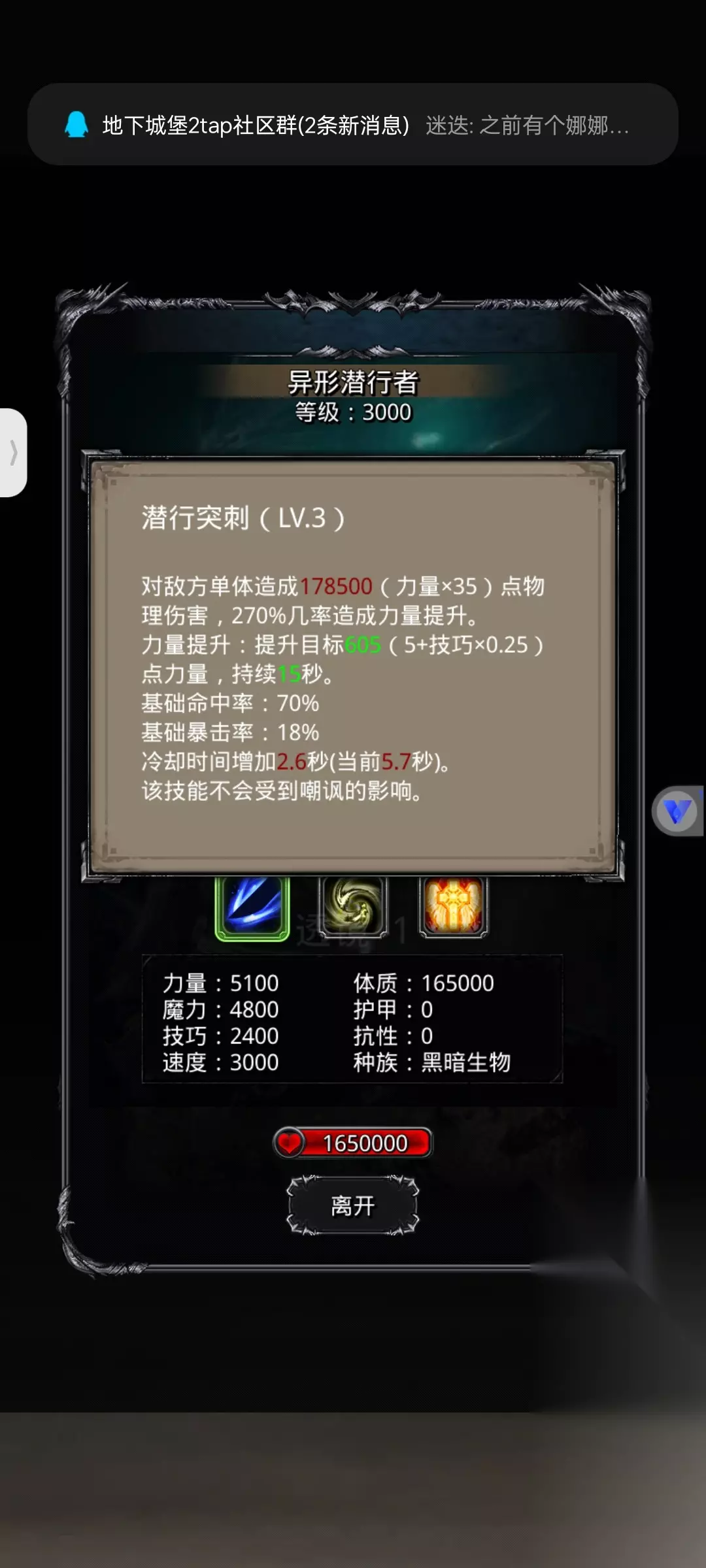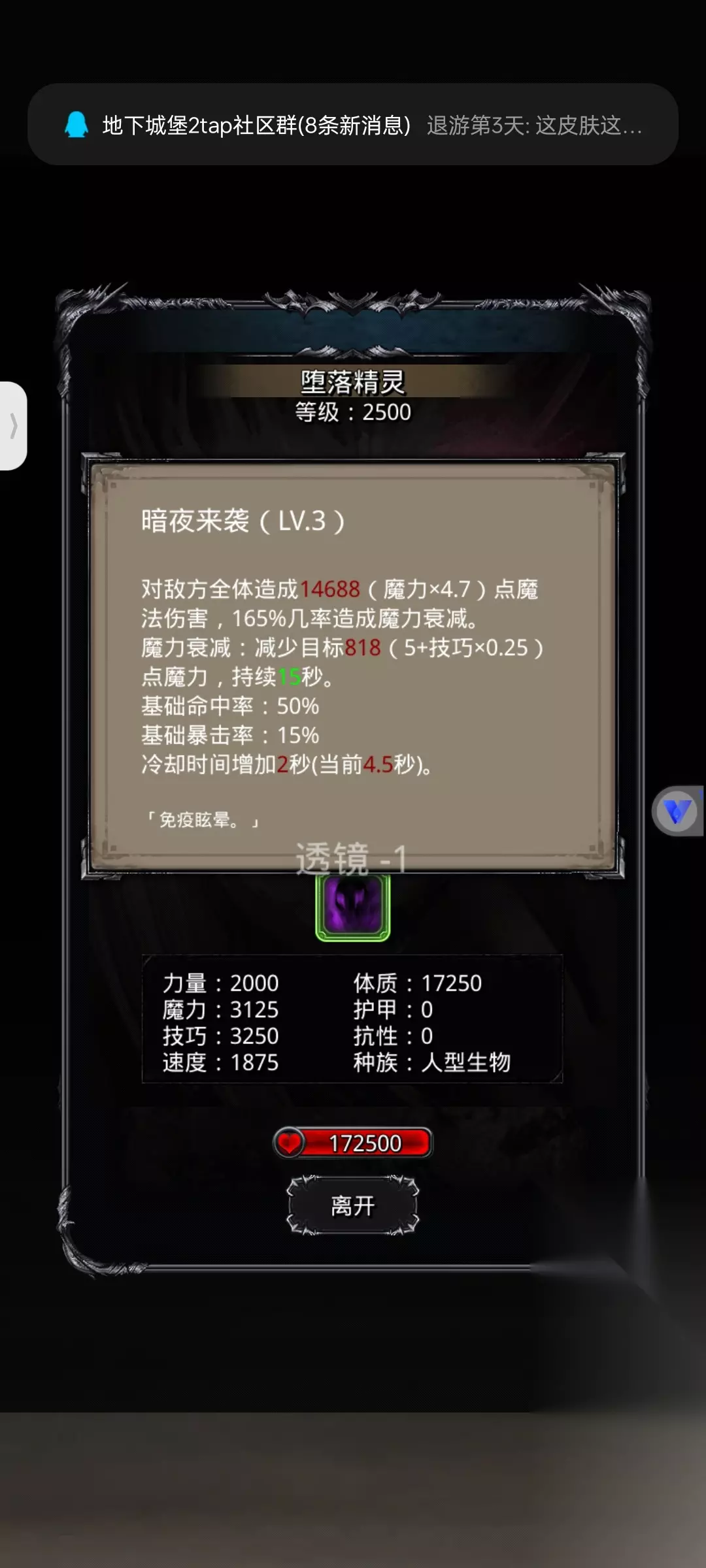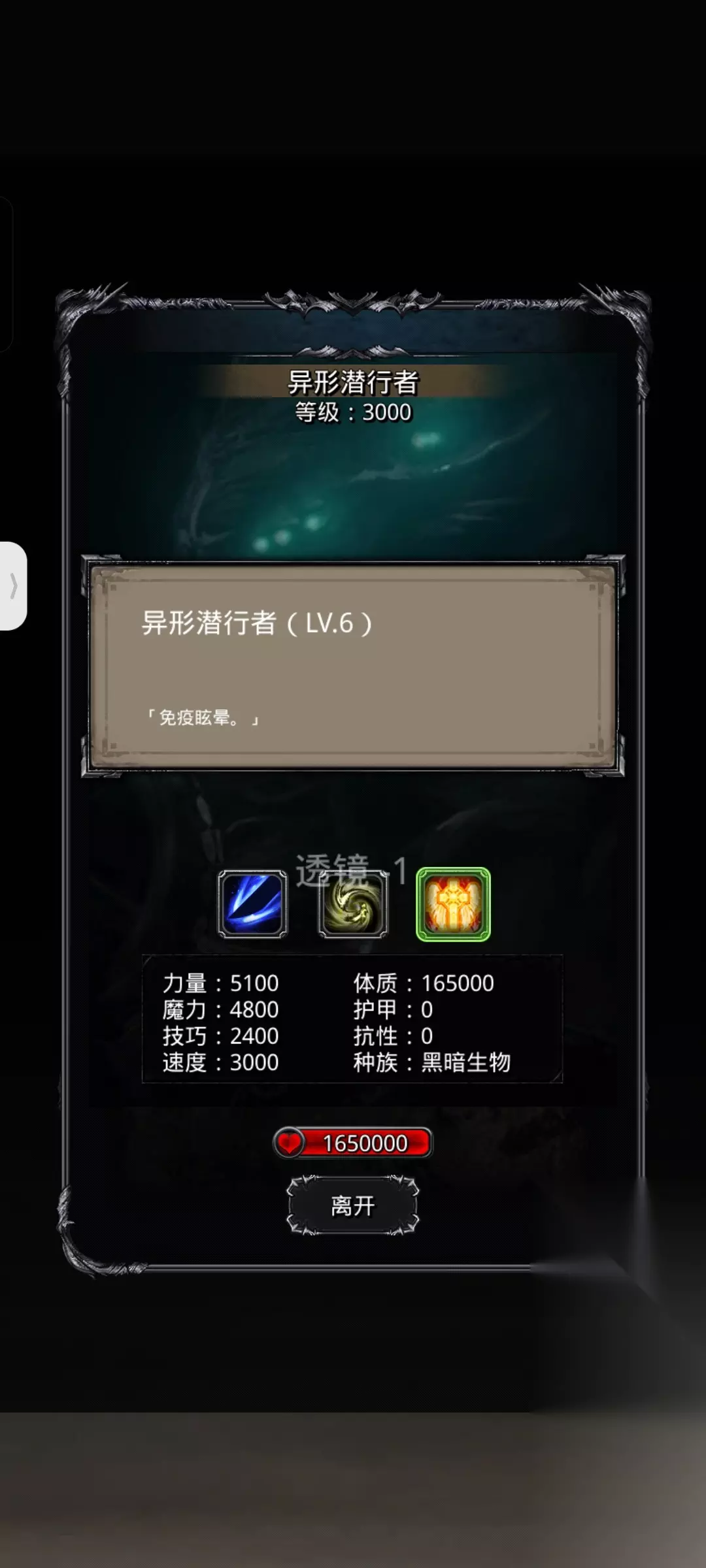地下城堡2:黑暗觉醒幻境监牢难度2展示如下: 地点 版本更新后,在图14放逐之地(55,33)处可以进入 进入监牢跳过剧情即可获得副本门票蓝图 注:进去后boss小怪只能一次性打完,出来会清空进度重新打 补充:进入战斗中撤退,打的进度可保留,所以可以小怪一套boss专门配一套