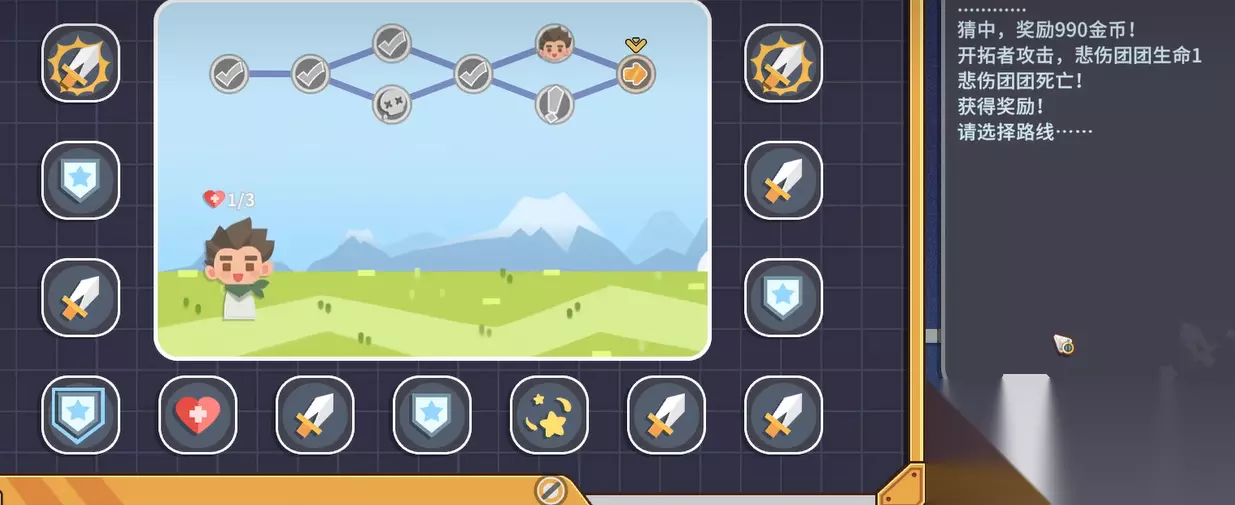 若某轮未命中,直接关闭游戏并读取上一存档即可重试,全程无资源损失。该机制依托游戏原生即时存档功能,是本方法可行性的关键支撑。进阶玩家可尝试高风险高回报选项,如“回血道具”:单次投入5枚金币,成功后获得40枚收益。所有投注均需在进入战斗前完成选择,且每次操作后建议再次存档,确保容错空间。 冒险机单轮最高收益为990枚金币(99次×10枚),虽单次上限有限,但可无限循环执行。战斗中角色阵亡亦不影响进度,仅需支付100枚金币即可复活,成本可控。若出现非目标结果(如盾牌),同样通过读档规避。持续沿用该路径推进,击败怪物后继续选择后续线路,形成稳定复利循环。