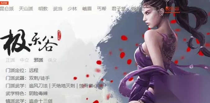 11、极乐谷: 门派武学有追风刀法、天绝地灭刺、蚀骨摧心掌。