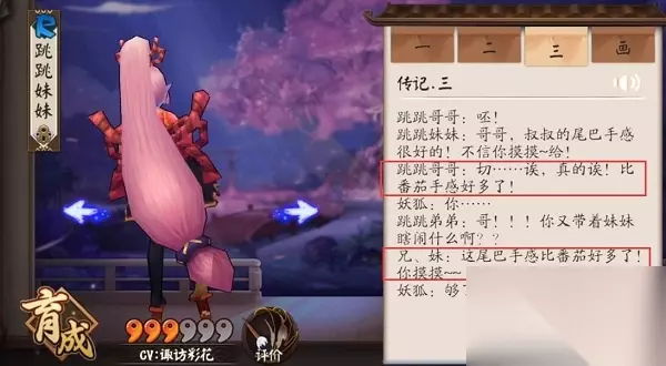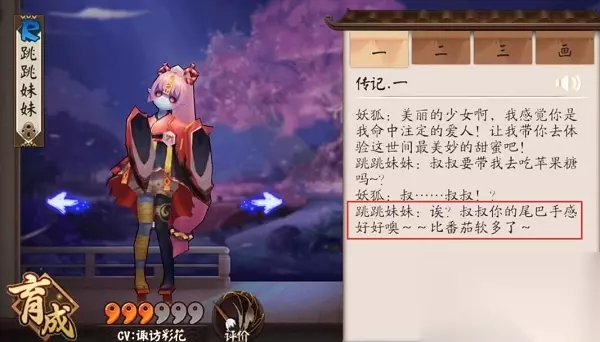 1、其实我们能够通过跳跳妹妹的传记来得知宠物狗的名字是番茄。 2、在传记一的对话中,跳跳妹妹说叔叔的尾巴手感比番茄软,这里就能看出番茄应该是一个宠物了。