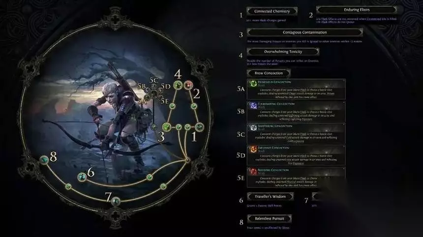 这个升华特性与各种药剂息息相关。 它有50%药剂充能,等于用药的时候加量不加价,还有持久药剂,在满血状态下持续充血,听上去很危险,但是很刺激。 接着,它还有提升毒药的效果,比如扩散毒药,对敌人施加毒药可以翻倍,还能丢各种元素的攻击药瓶。 最后两个升华点,还能保证玩家的移动速度还有顺畅性。这个适合有吃药刚性,喜欢远程毒的玩家。 如需了解更多详细内容和最新游戏更新,请继续关注233乐园。