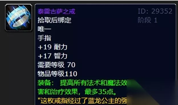 三、泰雷古萨之戒 这款戒指来说的话大傻我表示去了几次法力陵墓均未有幸预见,掉率可见一斑。前期来说还是非常不错的,毕竟法伤35点来说还是很高的。如果来点命中爆击那不直接无敌?