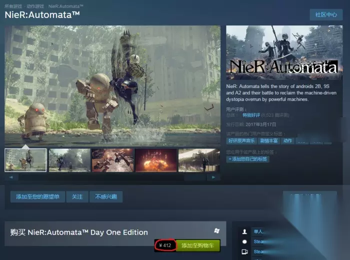 等待多时,《尼尔:机械纪元》(NieR:Automata)终于在Steam国区正式上线了。然而在上线后不久,游戏售价就从199元突然涨到了412元。 有玩家表示…