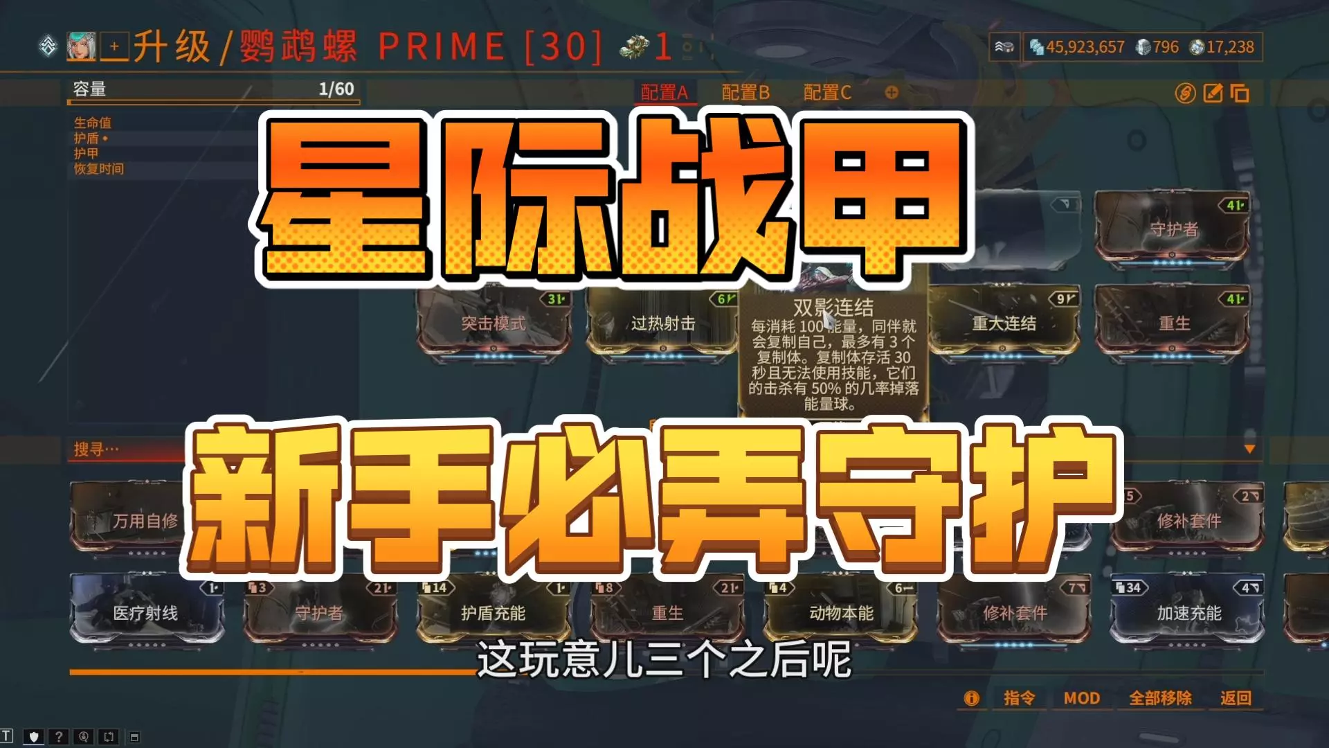 这是《星际战甲》的鹦鹉螺冰淞PRIME配卡攻略,展示了该同伴的配卡方案,包含双影连结、传染连结等Mod,还呈现了它的技能与实战效果,能实现30米聚怪,助力玩家提升战斗表现。