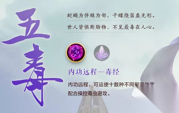 毒经:PVE的输出能力更强,不仅可以对敌人施加持续性掉血的DEBUFF,还能召唤出圣蝎、玉蟾、灵蛇、风蜈、天蛛这五种毒虫进行作战,后期学习到镇派经脉后,还可以强化毒虫、召唤碧蝶等进行作战,因此单刷能力非常强势。