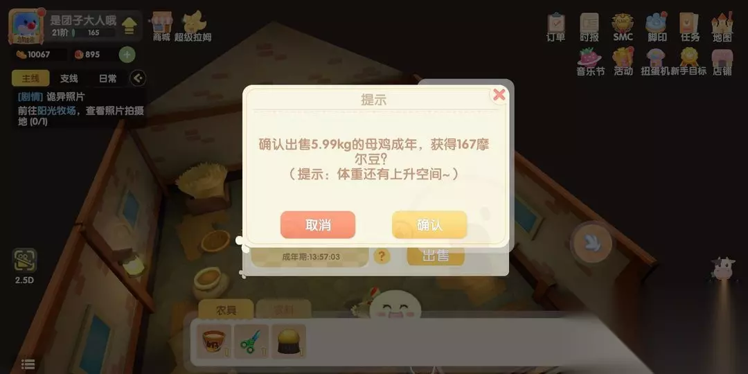 动物出售全流程大揭秘 家禽专场(鸡/鸭):直奔畜舍选中目标,弹出菜单果断点"出售",轻松入账无压力! 大型牲畜(牛/羊):先完成关键操作!挤奶桶伺候奶牛,羊毛剪对待绵羊——收获完产品才能解锁出售按钮,双重收益一步到位! 行情秘诀:出售前务必瞄一眼市场动态!供不应求时果断出手,滞销期不如先囤货。找戴草帽的NPC尤尤交易?记得把待售动物揣在背包里才能激活她的商店界面!