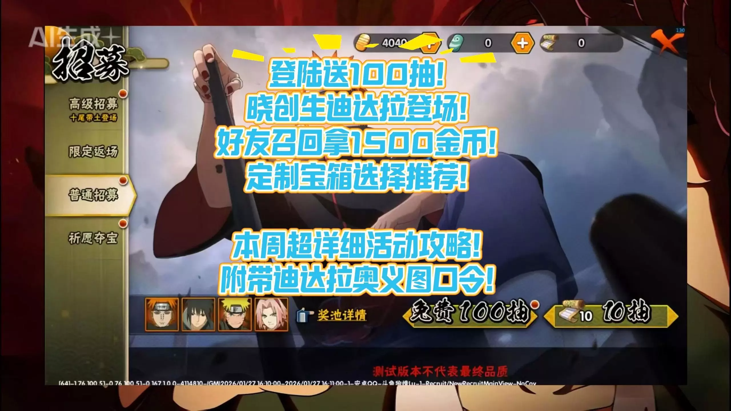 本集重点讲述了忍传 日常什么的就加速跳过了 要塞是玩组织玩战力玩家的活动 这里福利很大 跟零基础玩家没有关联 但视频内还是提了一