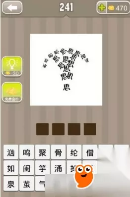 疯狂猜成语中,有一张满图都是思的图片题目,想必大家也是被这个思给难住了,那么疯狂猜成语很多思字答案是什么?下面就和玩游小编一起来看看吧~ 这张图的答案就是:思如泉涌 乍一看,大家根本就想不到思如泉涌这个成语,还是比较难的 但是仔细观察,会发现这些思堆出来的形状像喷泉一样 然后再想一想带有思的成语,大家差不多也能猜出来了。