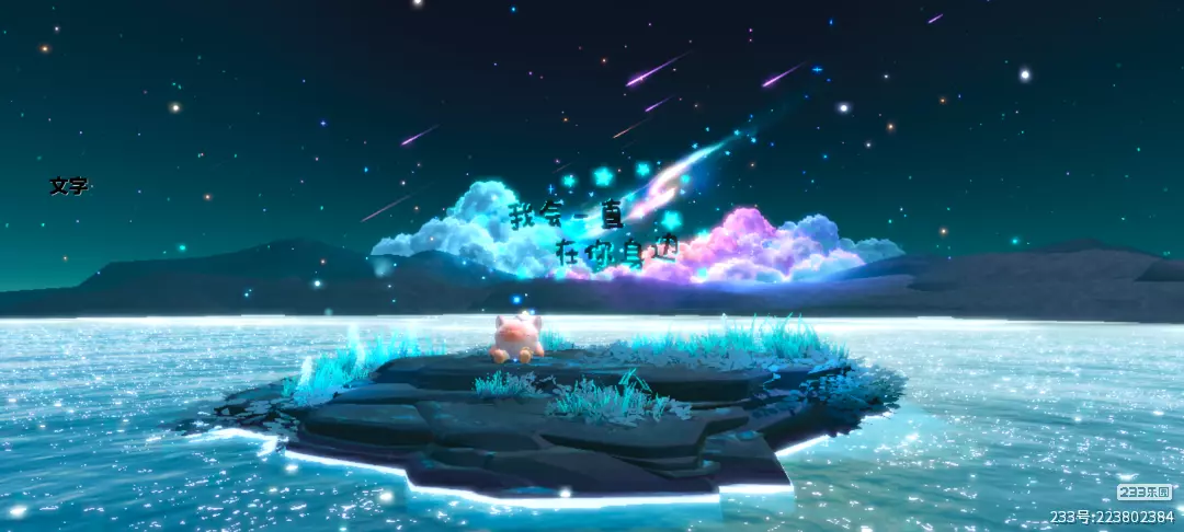 背景的绚烂天空简直超美唉,流星缓缓划过天空,绚烂的色彩衬得整个天空都变得超级漂亮啦,文案也是超级漂亮的~