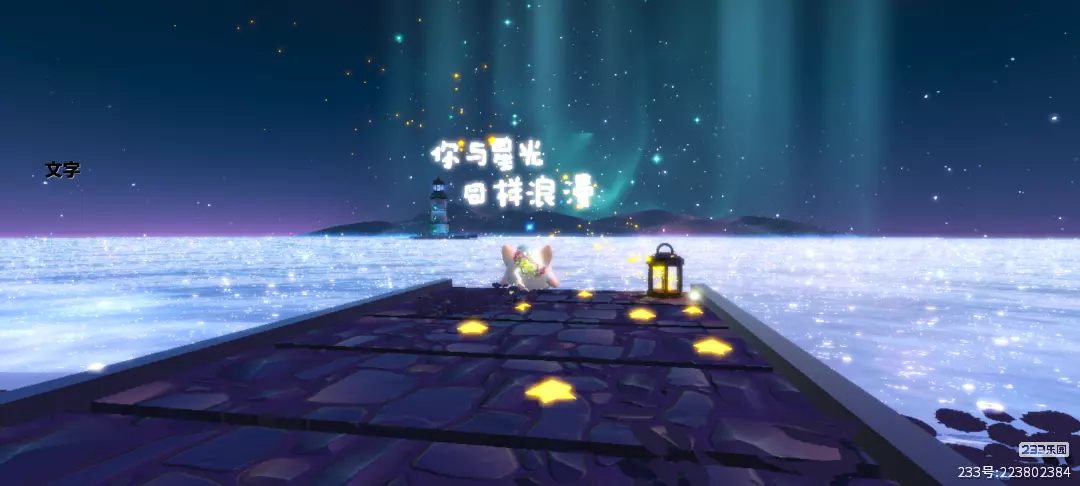 小石砖铺成的岸泛着淡淡的紫色,看起来超级神秘,搭配小星星和星星小灯,清新别致的感觉呢,超级喜欢~