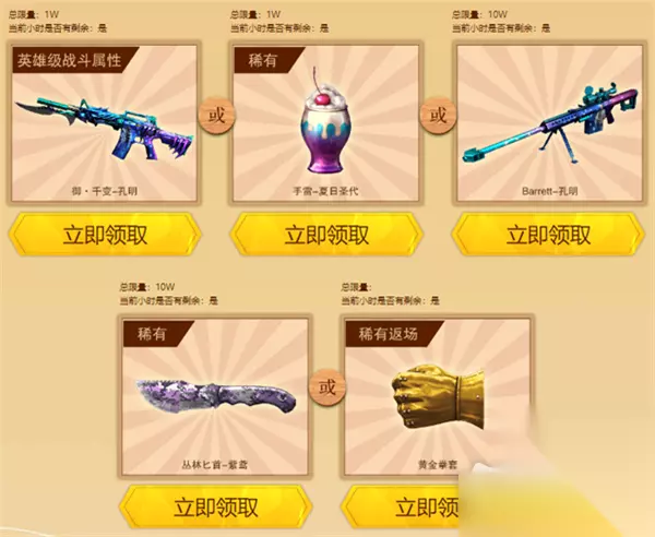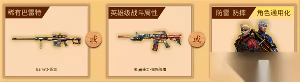 除此之外,玩家满足上述条件之后还可以在御·千变-孔明、手雷-夏日圣代、Barrett-孔明、丛林匕首-紫鸢或黄金拳套中自选3件领取。