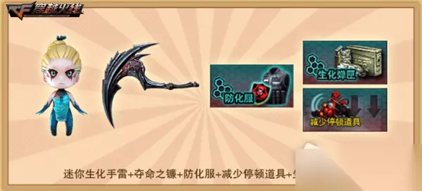生化追击!参与对局限时领迷雾幽灵 为庆祝9月版本“乱斗无极限”正式上线,9月24日至10月31日期间,玩家进入本次活动页面即可无条件领取一份生化补给套装,包含迷你生化手雷、夺命之镰、防化服、减少停顿道具与生化弹匣在内的生化礼包助力玩家畅玩“天空游乐场”。