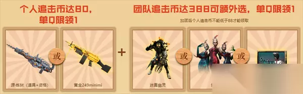 玩家在建立团队或参加团队之后,即可领取1份专属奖励,并且只有入团后完成任务获得的追击币才会计入团队追击币中,有意向领取终极大奖的CFer一定要尽快组建团队哟!