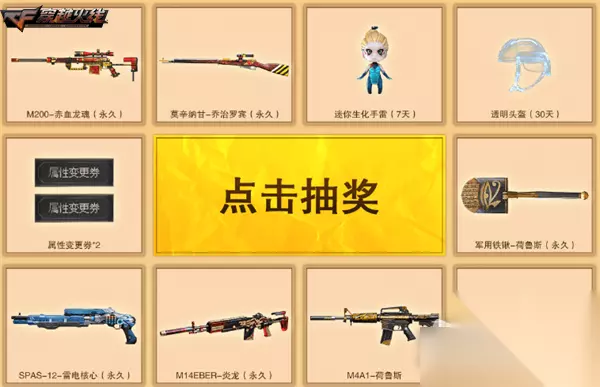同时,玩家每成功为10.1盛典提供2次助力还将同步获得1次抽奖机会,整个活动期间最高可以进行5次抽奖,有机会直接获得M200-赤血龙魂、莫辛纳甘-乔治罗宾、军用铁锹-荷鲁斯、SPAS-12-雷电核心等好礼。