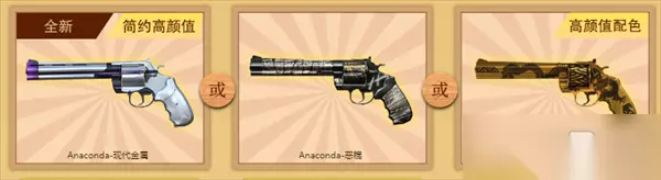 预定专场!全新Anaconda一局可得 9月17日至23日期间,玩家进入游戏任意完成1局对局后,即可在全新Anaconda-现代金属、Anaconda-恶棍或Anaconda-黑金神龙中任选1件收入囊中。无论是简约高颜值的现代金属系列,还是经典实用的恶棍系列,又或者是黑金配色的酷炫黑金神龙系列,都将为CFer的新版本探索带来更多惊喜。