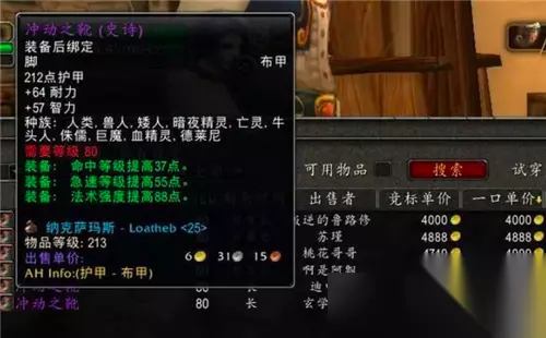 当然,并不是说所有的野生防骑都那么菜,但是一个职业的风评往往并不取决于上限,而是取决于下限。 现阶段怀旧服金团的就业环境就这样,想要比较顺利的进组,要么选择一些稀缺职业,比如萨满、猎人以及战士,要么选择一些可以堆叠的强力职业,比如DK、术士以及盗贼。而像防骑这种人数较多,又无法堆叠的职业专精,进组自然会很难。 二、团本的8件极品装绑,布甲鞋价值2万G,猎人萨满有福利 第一阶段的团队副本会掉落不少BOE装备(第一次使用后绑定的装备),这可都是好东西,由于可以在副本外交易,这些装备往往可以卖出远超其实际价值的价格。 法系BOE鞋子有两件,第一件是NAXX小怪掉落的冲动之靴,这双鞋子还煞有其事地写上了所有可以使用的种族,小编认真数了一下,所有种族都没遗漏。