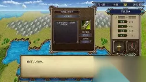 xjs 从北海道出来后,一路向东北方向航行十几天就能到达科尔夫了,这里小编建议在游戏时间的下半年来,最好是11月底或12月初,这样来的时候风向是东北风,刚好和我们行驶的方向一致,等回去的时候时间差不多就到1月份了,这时候风向又变成了西南风,和我们回去的风向一致,船只行驶的速度会快上很多。xjs 科尔夫的村民见到华梅到来并没有刁难他们,反而如释重负一般地把“唐代的竹艺品”交给了她。这个村庄只能补给水、粮食和体力,不能维修船只,如果途中遇到鲨鱼的话,最好提前存个档,免得前功尽弃。xjs