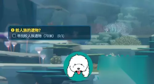 2、途中可以探索宝箱或者捉鱼,注意身上背包里面的物品重量,超过规定的重量,氧气消耗会增加。 3、之后缓潜到水下70米的位置,来到图示这个位置,可以看到鲛人族的遗物,点击拾取。