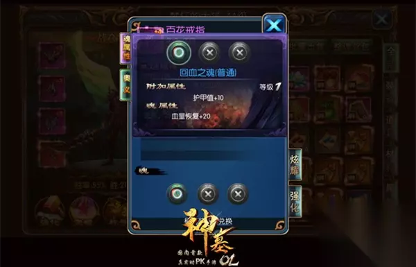 “魂”处的三个圆孔代表可以为该装备伏魂三个,“魂属性”点击后会对当前该装备的伏魂情况在这里就不会多介绍,之后会提供给大家更全面的噬魂玩法攻略。 图4:魂属性展示