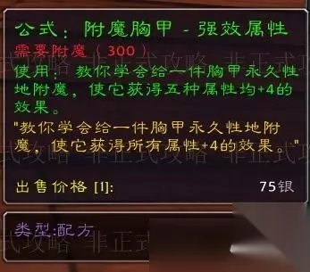 2、公式:附魔胸甲-强效属性。这个是60+级的精英怪和世界BOSS掉落,掉率0.02%~1.89%之间