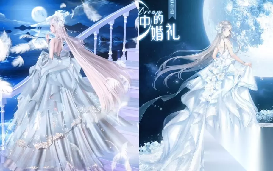 梦中的婚礼” 是《奇迹暖暖》中 “梦恋奇迹” 活动推出的婚纱套装,以下是关于它的详细介绍:套装部件:发型:草竖琴,银灰色长发在顶上编织一个大发辫,发辫收尾后可固定头纱或头饰,飘逸的长发顺着礼服垂下,发尾自然内扣如银色海浪。连衣裙:纯白永恒,奢华的抹胸露背大拖尾婚纱,由多层薄纱精心缝合制成,裙摆为斜式波浪形,从腰间右侧而下,最外层大裙摆由十层左右轻纱组合,连着一米五长的大拖摆,里层由两三层轻纱组合,共有三层裙摆,花纹由浅至深、由小至大,最内层银白暗纹以亮纱制成,厚纱连接处及后腰处点缀着白色金蕊的玫瑰花饰。鞋子:无梦之愿,梦幻婚鞋,鞋跟连接处是玫瑰造型,鞋口以蕾丝装饰,并用花朵作扣,加上一圈白色网纱。头饰:海颂枝,由精心挑选的花朵制成,花朵间还点缀了一些白色珠串。