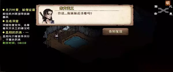 机关顺序为:角 尾根据提示"青龙之子",再根据机关上的字联想到"青龙七宿",角,尾正是其中两个,注意顺序不能反 破解机关进洞如果是女号,东方天工会问你要不要蒙眼,随便选择无影响 6,5搜索记得点火折子,3,7尸骨检查,2,3尸骨检查,查看1,2古玩架以及书案 1,3搜索,用铁锹挖掘.3,7对话,然后收尸,东方天工问你玉佩怎么处理 送还:他把玉佩给你,然后可以将玉佩交给幽州5,19鲁猎户,获得3点声望,2000阅历 归他处置:他就会将玉佩跟尸体埋一起 出洞窟,对话,获得6000阅历,800文 再次进洞1,3搜索,感悟,剑修+1