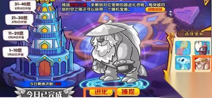 6.打开时空之塔活动后,点击选择瞌睡王,然后点击进化; 7.打开进化界面后完成挑战即可进化。 以上就是的全部内容,想要了解更多洛克王国的相关攻略资讯的小伙伴们赶紧关注吧!