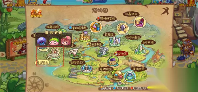 2.打开世界地图后,找到宠物园;