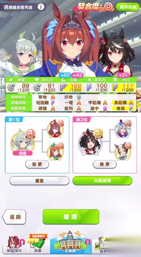 大招的两种触发方式,实际情况下正好对应着角色,两种不同玩法。目前,主流玩法玩先行的话则会非常容易触发第二段大招,如果是玩逃马的话,一直处于领先地位,则会触发第一段大招。可以说,大招虽然表面上看起来数值加成并不高,但实际情况下,对于角色触发而言还是非常容易触发使用的。因此,对于新手教学角色来说,是相当不错的技能的。 2、养成攻略 此角色是一个典型的中距离选手,因此,在技能以及资源卡的选择方面,偏向于速度,耐力和力量都需要的均衡类型,而且智力属性也不要落入下风。整个五维属性加点方面,除了毅力以外,剩下的所有都可以进行加点。特别是速度和智力,这两者对于中距离角色来说相当重要,可以优先进行学习使用。