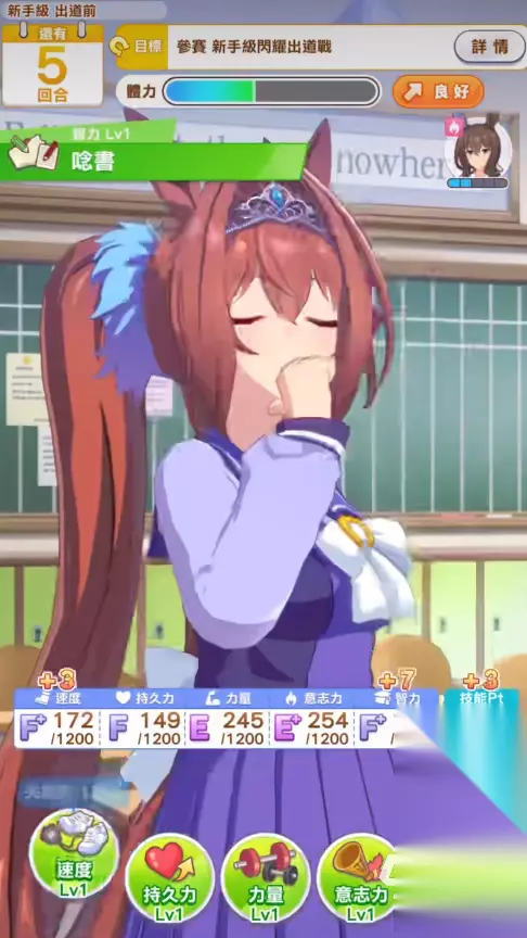 在第一年的养成环节下,建议以提升支援卡的友情羁绊以及提升角色本身的好感度为主。前中期阶段几乎没有什么可以值得考究的比赛赛程,玩家们可以凭借着随机获得的点数都可以很好的进行通关。这个阶段下,尽量以攒我们的支援卡友情为主要目的,争取在我们第一次的休学旅行当中出彩圈,如果能在我们第一次休学旅行当中出两个以上彩圈的话,那么本次的育成将会有极大的改善。