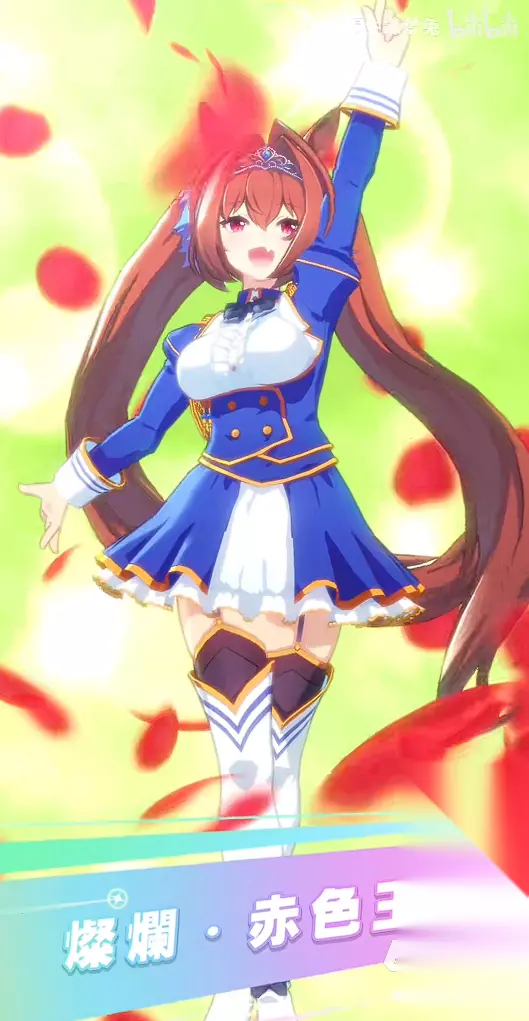 固有技能方面,大招固有技能闪耀的赤色王牌,在比赛最后阶段位置,如果处于前方的情况下,则发挥出第一的力量。具体效果触发条件有两种,第一,赛道进行一半以上且名次等于一的时候,距离后方角色如果超一马身位则会触发。第二,行进距离在一半以上,也就是跑完一半,且名次在第二名的情况下超越前方角色的过程当中触发。前者可以获得持续五秒的0.25速度,而后者则会获得持续五秒的0.3加速度提升。