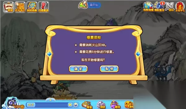 洛克王国及时修复怎么过?洛克王国及时修复攻略是什么?下面小编给大家整理了洛克王国及时修复攻略,快来看看吧! 洛克王国及时修复: 1.洛克王国及时修复活动一共需要四天完成,每天会出现一出需要修复的场景,且损坏程度、修复限制的条件均不一样。 2.损坏程度越高,修复难度越大,小洛克们可以根据提示前往对应的场景进行修复。 3.第一天:画中仙 损坏程度:※※※ 修复提示:带火山灰(罗伦斯兑换),不可以带上火系宠物。 与罗伦斯兑换火山灰后,找到地图中颜料部分,进行修复,需要等待5分钟: 今日地图中有两只宠物,与之战斗胜利即可;待时间冷却后就能修复完成,大家记得去点击完成按钮哦,否则不计入。