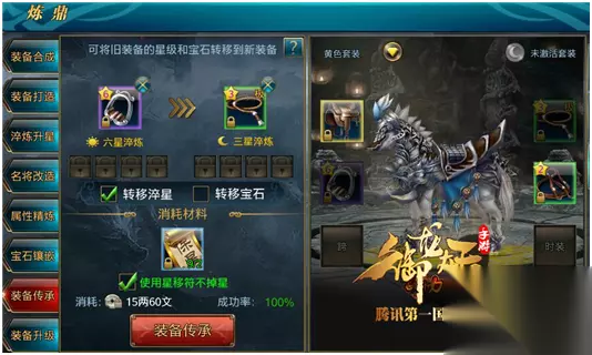 4.装备传承 马匹装备的传承也是可以将旧装备的星级移到新装备,不过6星以上装备移星的时候是要消耗星移符的。