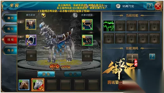 3.技能 同端游一样《御龙在天手游》也可以来学习马的技能,并且更人性化的是,更换马匹之后的属性和技能都可以延续下去这就是接下来我们要提到的传承。