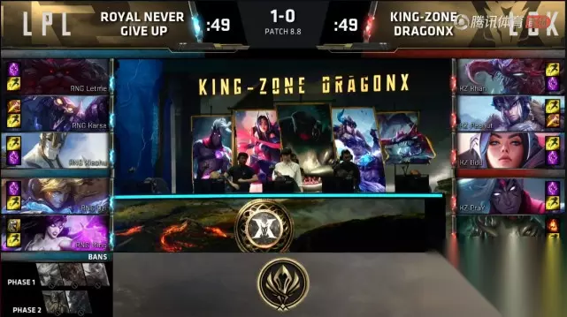 第一局BP 阵容方面:RNG选到了塞恩、奥恩、水晶先锋、伊泽瑞尔和风女。反观KZ选到了刀妹、剑姬、女警、瑟庄妮和布隆。 水晶先锋通过精妙的刷野路线快速到六,而小花生单兵入侵惨遭RNG上中野三人围剿。虽然RNG拿下下路一塔以及火龙,但KZ通过一波四人包上将双恩+上路外塔收入囊中。由此可见,双方对于前期优势的争夺异常激烈。KZ的131推进付出了代价,Bdd与Khan相继惨遭围剿,而Letme再现灵性绕后留人,RNG以牺牲一人的代价击杀KZ四人。随着RNG再度抓到KZ下路组合,大龙被RNG轻松收入囊中。 KZ殊死一搏寄希望于女警的单带做出止损,但RNG众人无伤击破上中两路水晶给予KZ巨大的兵线压力。虽然没有了大龙BUFF,但巨大的经济和等级的领先令RNG在KZ下路攻防战中再度获胜。最终,RNG众人冲上高地,兵不血刃拿下第一局比赛的胜利。