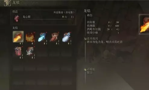 总之,龙心脏的用途就是兑换强力的祷告技能,这个材料的作用还是相当之大的,到后期如果你想玩龙系祷告,可以洗点去加信仰来试试。 龙心脏使用方法分享 1、艾尔登法环龙心脏是我们击败巨龙BOSS后可以获得的道具,我们可以在龙飨教堂使用龙之心兑换各种龙祷告,龙祷告需要我们有较高的信仰才能够使用。