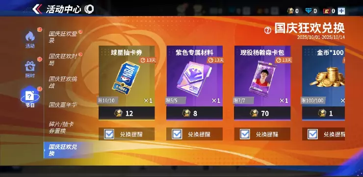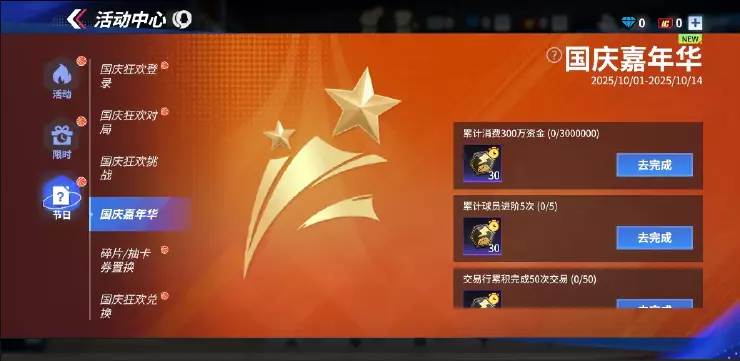 兄弟们!十月长假虽然“余额”归零,但吉哥的福利流水线还在疯狂加班!还想肝一波捞资金、钻石、抽卡券和置换的巨星们抓紧时间!想冲7星杨瀚森的最后时机来了!