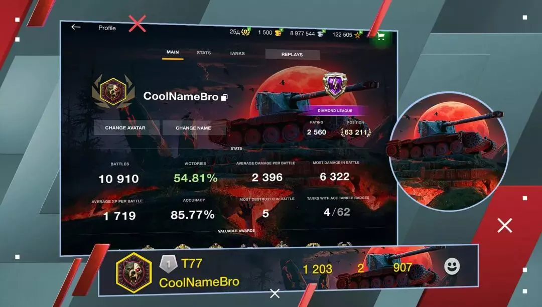 完成行动后,您将收到上面的所有奖励和大量资源。在高级通行证的等级到达60级后,您能够着手开启战斗通行证集装箱。如果您足够幸运,集装箱还会掉落游戏中最稀有的坦克之一:IX级AE阶段I型。
