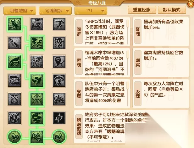 梦幻西游里面有很多的职业,今天给大家带来的是游戏里面阴曹地府奇经八脉点法推荐,4月的门派调整上线后,很多的小伙伴不清楚要加点,那么下面就是具体的内容. 梦幻西游阴曹地府奇经八脉点法推荐 【常规任务】流派经脉推荐