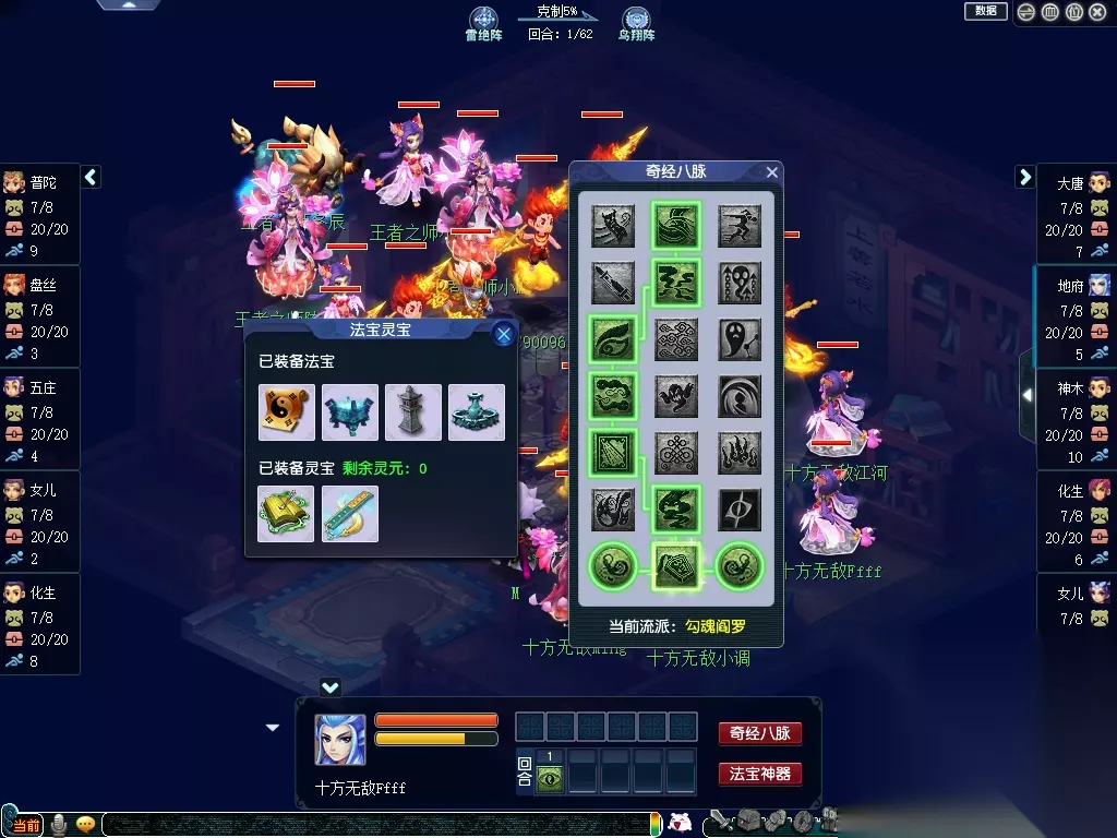 【勾魂阎罗】经常出现在“国标点杀”阵容体系中,其主要作用是“点杀控制”,推荐点法为“2211122”。此点法不仅能通过经脉提升阴曹地府的锢魂术命中率,还可以强化黄泉之息的减速效果,使得己方更容易拿到全场一速优势。