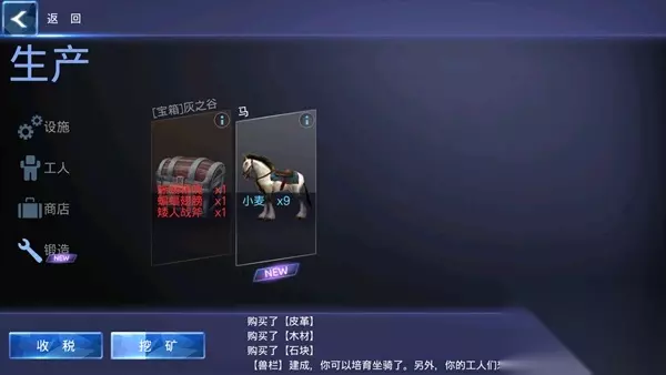 兽栏建好之后可以锻造坐骑马,这里需要消耗小麦。
