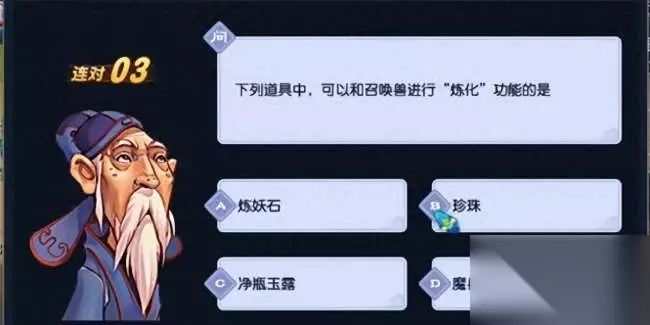 4、下列道具中,可以和召唤兽进行“炼化”功能的是?(答案:炼妖石)