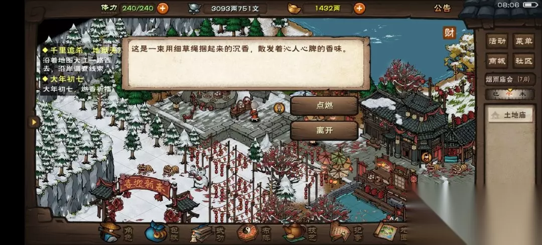 本文为你详解烟雨江湖2023年新春支线的年初七任务:在洛阳接取任务后,给指定3人送小纸人,再点沉香,完成后可获得50烟雨钱、1000阅历、5颗顺脉丹的奖励。