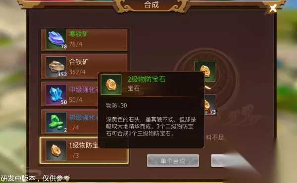 材料不足怎么办呐?如果你有足够的一级宝石,却没有二级宝石,那你就可以进入合成界面把一级宝石合成为二级宝石,合成数量都有介绍可以在合成的时候看见哟!