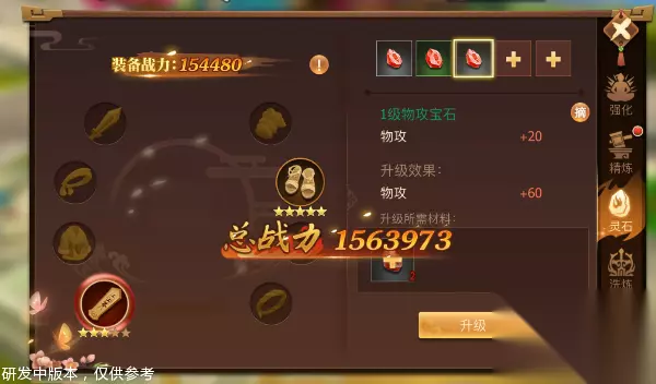 2.灵石的升级 选择镶嵌成功的灵石,就好看到升级界面,告诉你升级之后的效果以及所需的材料,材料足够就可以点击升级按钮升级了。