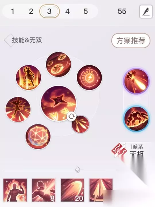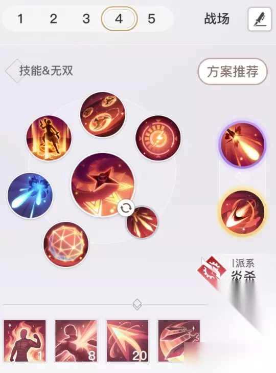 解析:战场类型地图,人数不多,使用炎杀天赋,且需要占点打阵地战。点出战术盔甲减少魔能甲CD,火力增强及无双枪术-20。战场大多数没有时间点满流血,所有不选择炎杀狙击,而使用加深无双伤害来增益死亡狙击及业火。炎天靠的点杀与爆发的AOE,限制技能交给圣堂天昭等。螺旋刃可替换为杀戮风暴。战场中寻找输出位置,及时观察敌方目标选择,规避伤害。 技能打法:黯灭弹驱散圣堂的光盾,奶妈的灵甲及炎天的入战被动的盾。聚能配合业火,打出爆炸AOE伤害。死亡标记配合死亡狙击,针对残血高战及输出进行斩杀,就算没杀掉,也会导致敌方单位低血量不敢贸然输出,对我方造成减员。炎天依赖点杀与业火爆发的AOE收割。 领地战及魂域等