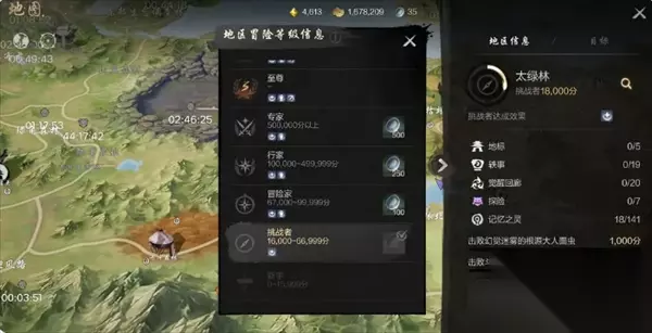 每日必做七:地图探索 游戏的大世界中同样拥有着许多探索点,这些探索点包括地标、轶事、觉醒回廊、探险、记忆之灵、挑战怪物等诸多内容,由于探索内容繁多,玩家们可以每天抽空探索。 其中,收集轶事、寻找记忆之灵、完成觉醒回廊都可以获得丰厚的属性奖励,使灵芝变得更强。挑战怪物则可以获得高品质饰品、命运石、上锁的箱子、金币等丰厚奖励。完成不同地区的探索内容均可以获得地区探索分数,当分数达到一定要求,还可以领取到商城积分,商城积分的用途暂时未知。