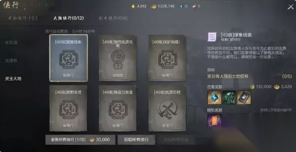每日必做二:侠行 侠行任务的主要奖励包括大量经验值、金币、绑定神石、强化石碎片、星光剑灵召唤券等丰厚奖励,随机奖励包括高品质饰品、灵药、秘诀、金条等奖励,这些奖励的丰厚程度均根据侠行的品质而定。每天完成侠行都可以获得12抽的奖励,而抽卡资源是相当紧缺的,灵芝可以什么都不做,但侠行一定要抽时间做一下。