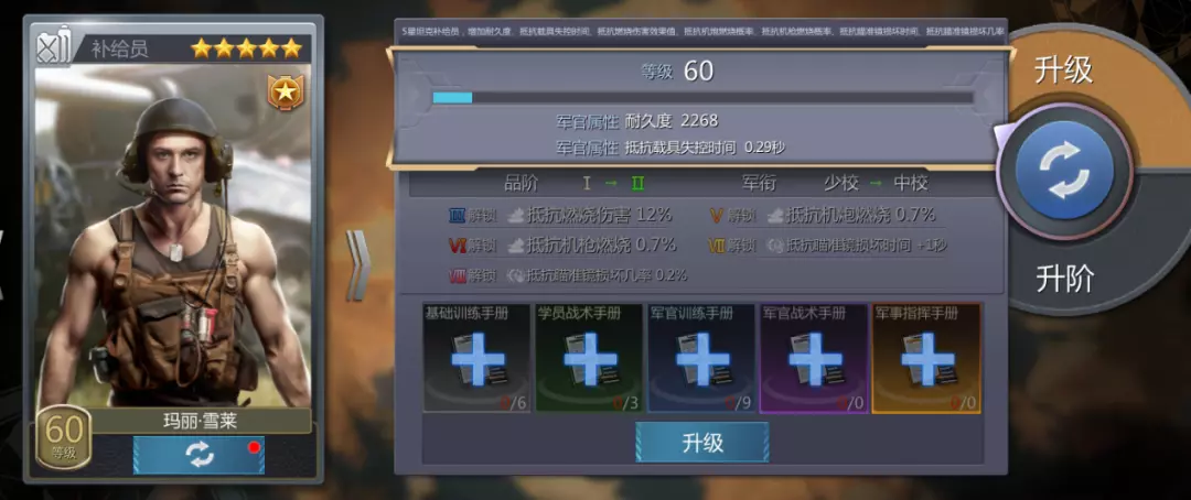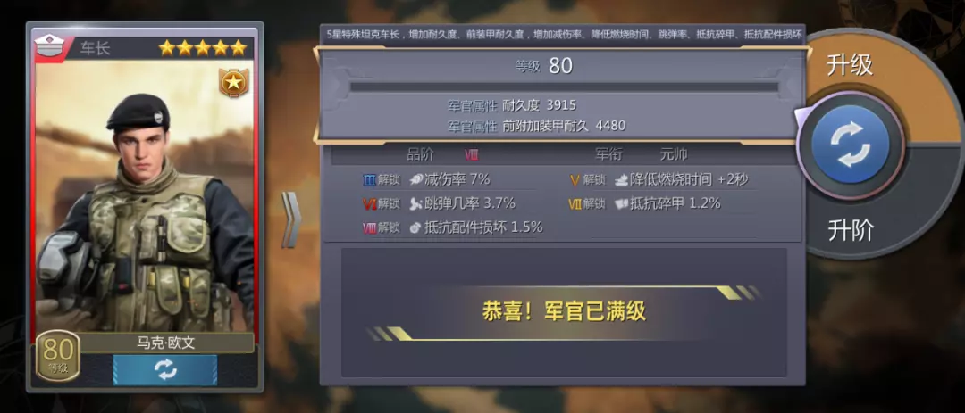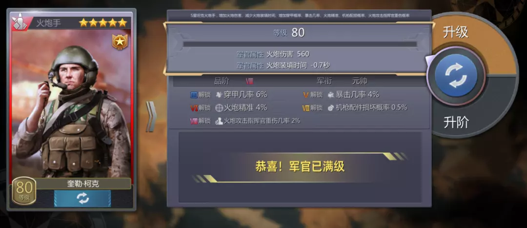 目前只推荐车长/驾驶员/火炮手/补给员这4个战神军官,因为带来的收益是非常大的,机械师/损管员可以用普通的,适配性还是不错的。
